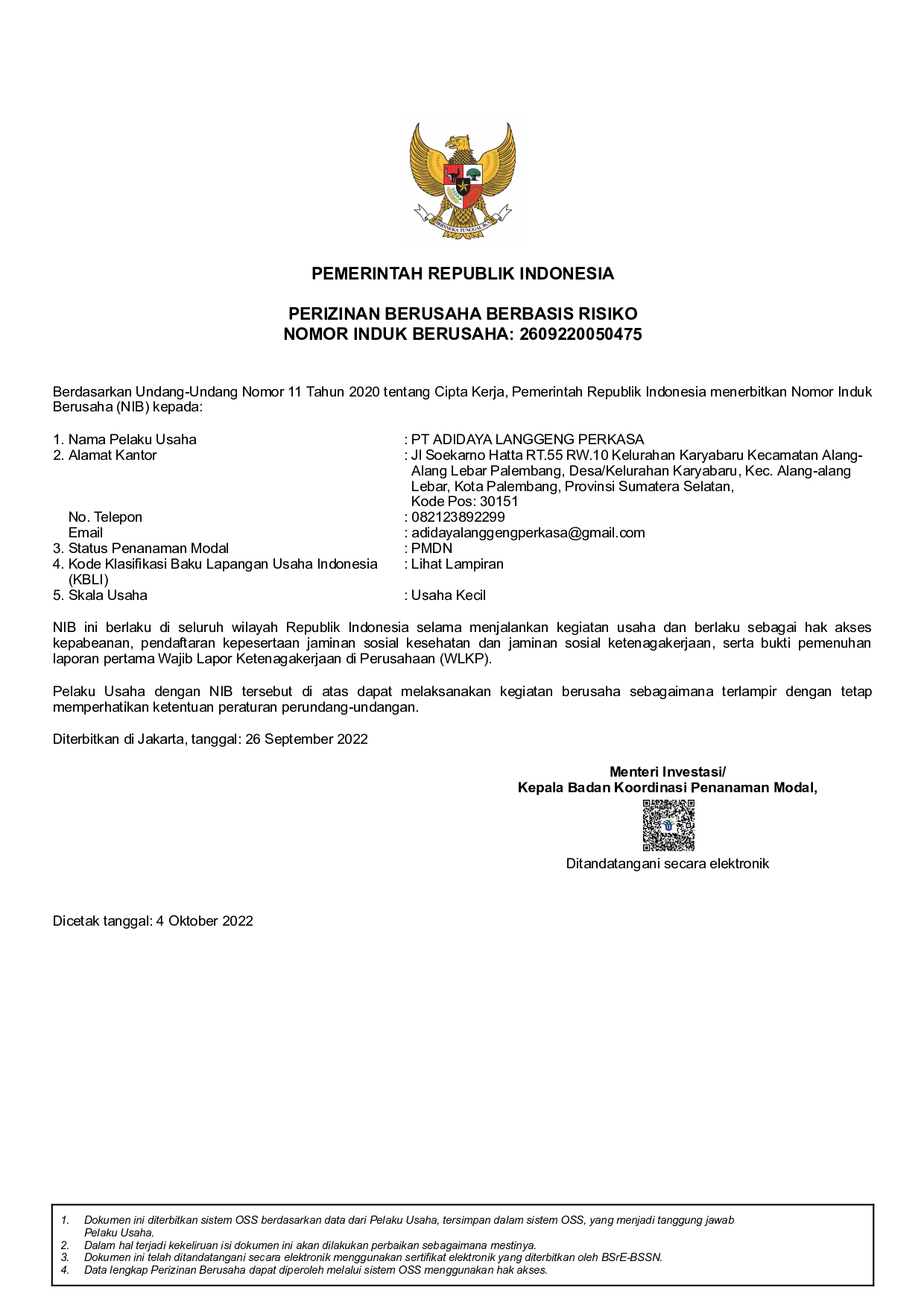 Anda Dapat Melihat Legalitas Perusahaan, Seperti Dokumen NIB dan Dokumen SIUP Pada Link Dibawah Ini